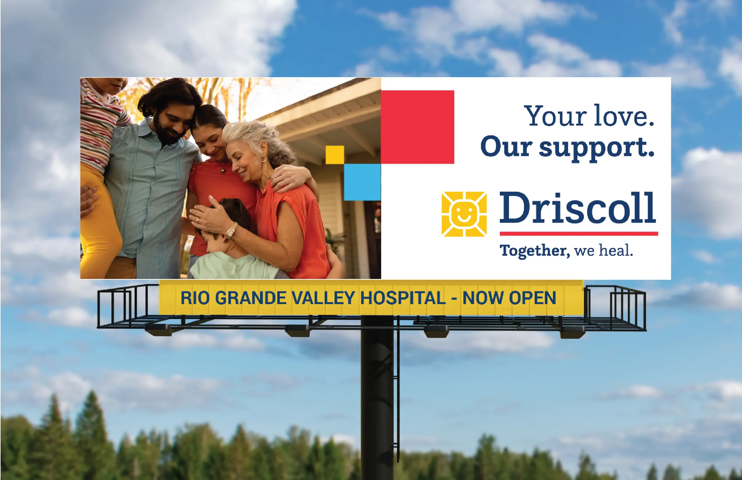 Driscoll Health System provides comprehensive pediatric care across South Texas through its hospitals, clinics, health plan, and community support. As it expanded with a new freestanding children’s hospital in the Rio Grande Valley, our team brought its story to life with our comprehensive brand campaign, “Together, We Heal.”